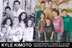 I am writing today on behalf of Kyle Kimoto and his Family. Kyle is currently an inmate in Federal Prison and he has now served over 12 years of a 30 year sentence. I believe the 30 year sentence imposed on Kyle (and his Family) is extremely unfair, and truly cruel and unusual. Kyle was charged in 2007 for what the Government said was False or Misleading Advertising that they alleged took place in 2001-2002. Kyle was tried and convicted in 2008, and he was then sentenced to a shocking 30 years for a “Conspiracy” charge for false or misleading advertising. At the time of his sentencing, the average sentence for others convicted of similar crimes was 3-5 years in prison.